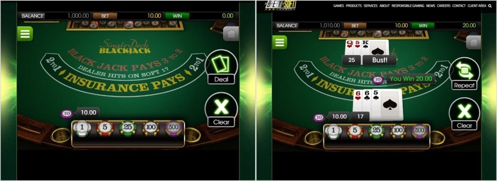 Çoğu rakibin aksine, Betsoft geniş bir uzmanlığa sahiptir ve casino işletmecilerine sadece modern 3D makineler değil, aynı zamanda 20 çeşit masa oyunu sunmaktadır (blackjack, rulet, bakara, remi, poker, barbut vs.). Ne yazık ki, tüm bu çeşitlilik sadece masaüstü cihazlarda kullanılabilir. Şu anda sadece blackjack ve rulet güncel ToGo sürümlerine sahiptir. Ancak hiç şüphesiz, bu kusur en yakın gelecekte düzeltilecektir.